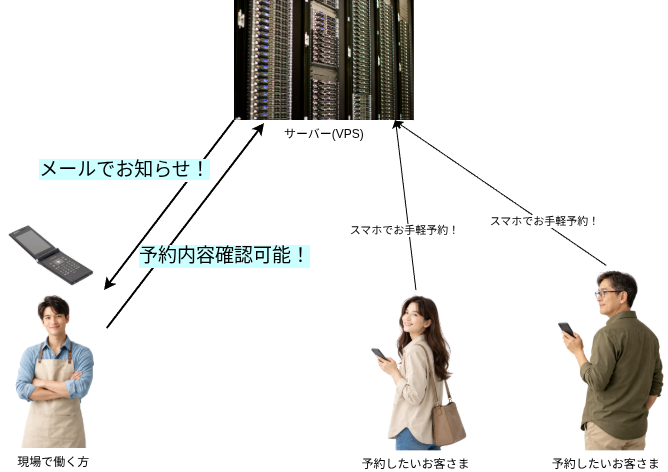 お客様とお店のリンクが完了しましたら、お客様が予約・注文をすればメールが来るようにすることも可能です!