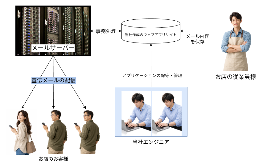 以上の2点を意識したオーダーメイドのメールシステムになります。